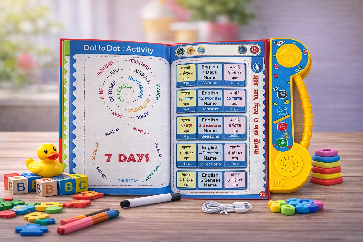 শিক্ষাকোষের টকিং ইন্টেলিজেন্স বুক এই কাজের  এটি বাচ্চার সাথে কথা বলে, প্রশ্ন করে এবং গান শুনিয়ে তাকে মাতিয়ে রাখে। ৪০ পৃষ্ঠা জুড়ে ৫২টিরও বেশি লার্নিং কন্টেন্ট আপনার সন্তানের প্রি-স্কুলিং শিক্ষাকে করবে আরও স্মার্ট ও আধুনিক।